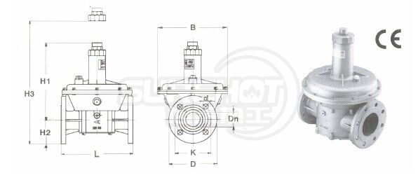較大的輸入壓力1bar(100kpa,1公斤壓力);輸出壓力2.5-300mbar取決于可調的額定彈簧,彈簧可更換;法蘭接口;