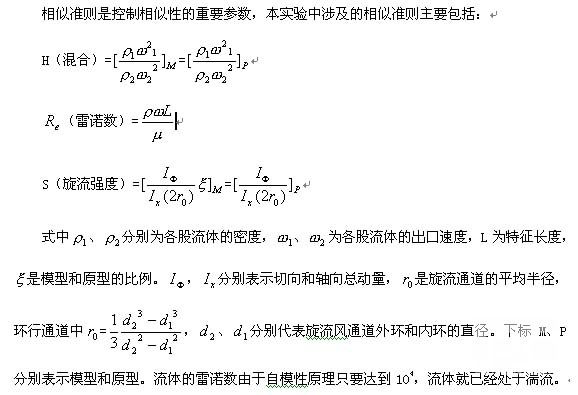 模擬試驗要與燃燒器出口湍流場中運動學、動力學相似,必須滿足相應(yīng)的相似條件:幾何相似和必要的相似準則。幾何相似主要是燃燒器以及系統(tǒng)在原型和模型中幾何形狀要求相似。本實驗?zāi)P秃驮偷谋壤?=1:10。